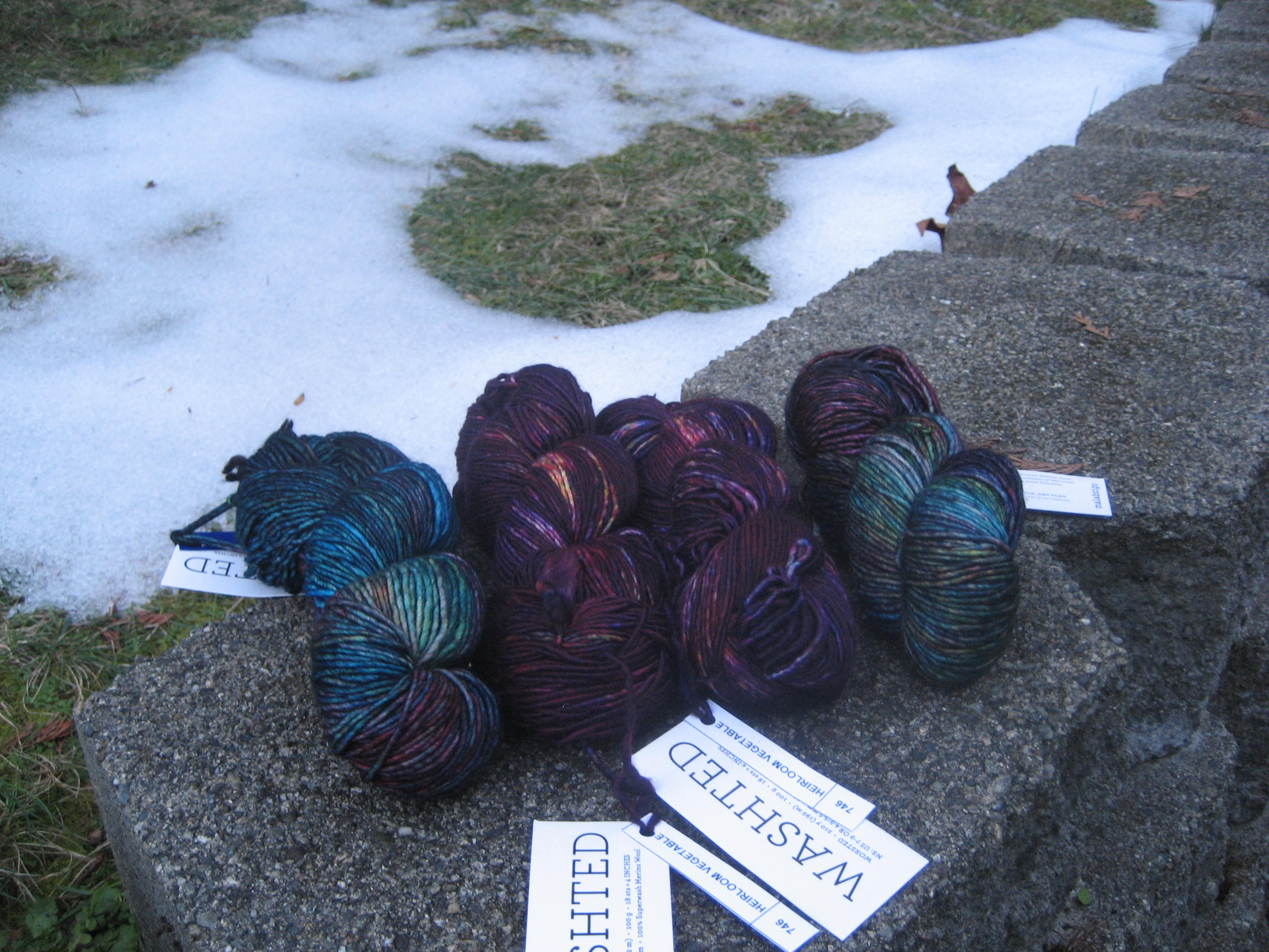 It’s March 4 and I have four new projects for Malabrigo March so far. My plan to only knit from stash has been tossed out the window. I have fallen head over heels in love with the new Malabrigo base Washted. Especially the new colorway Heirloom Vegetables. They’re in the middle below.