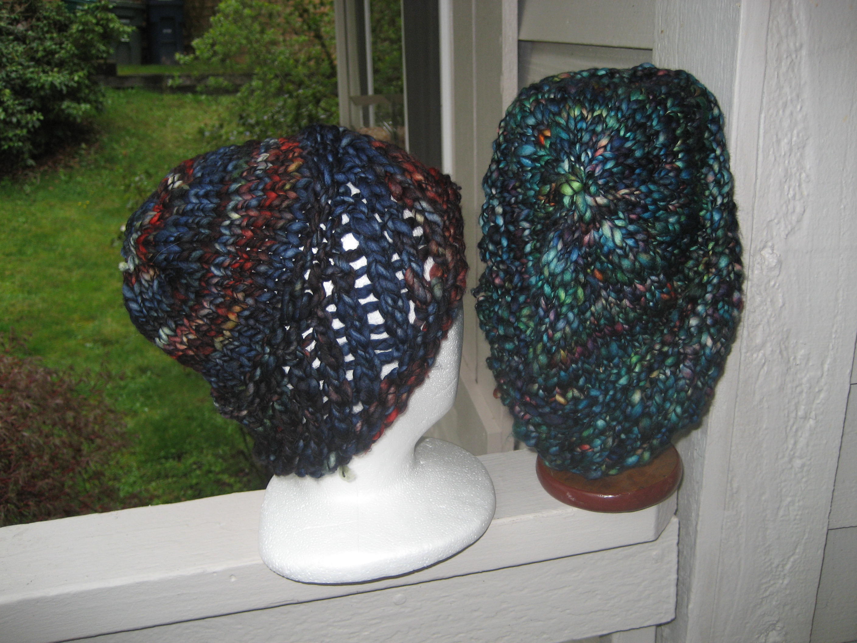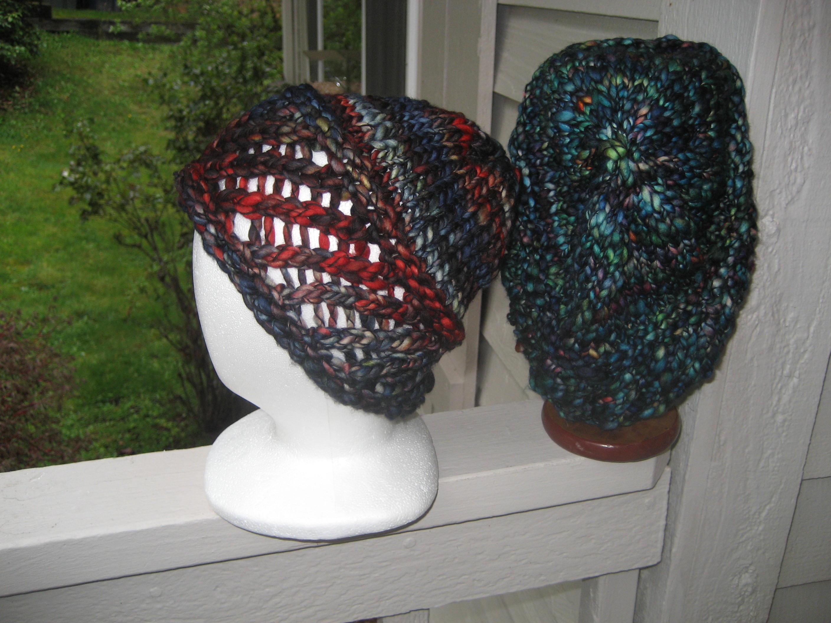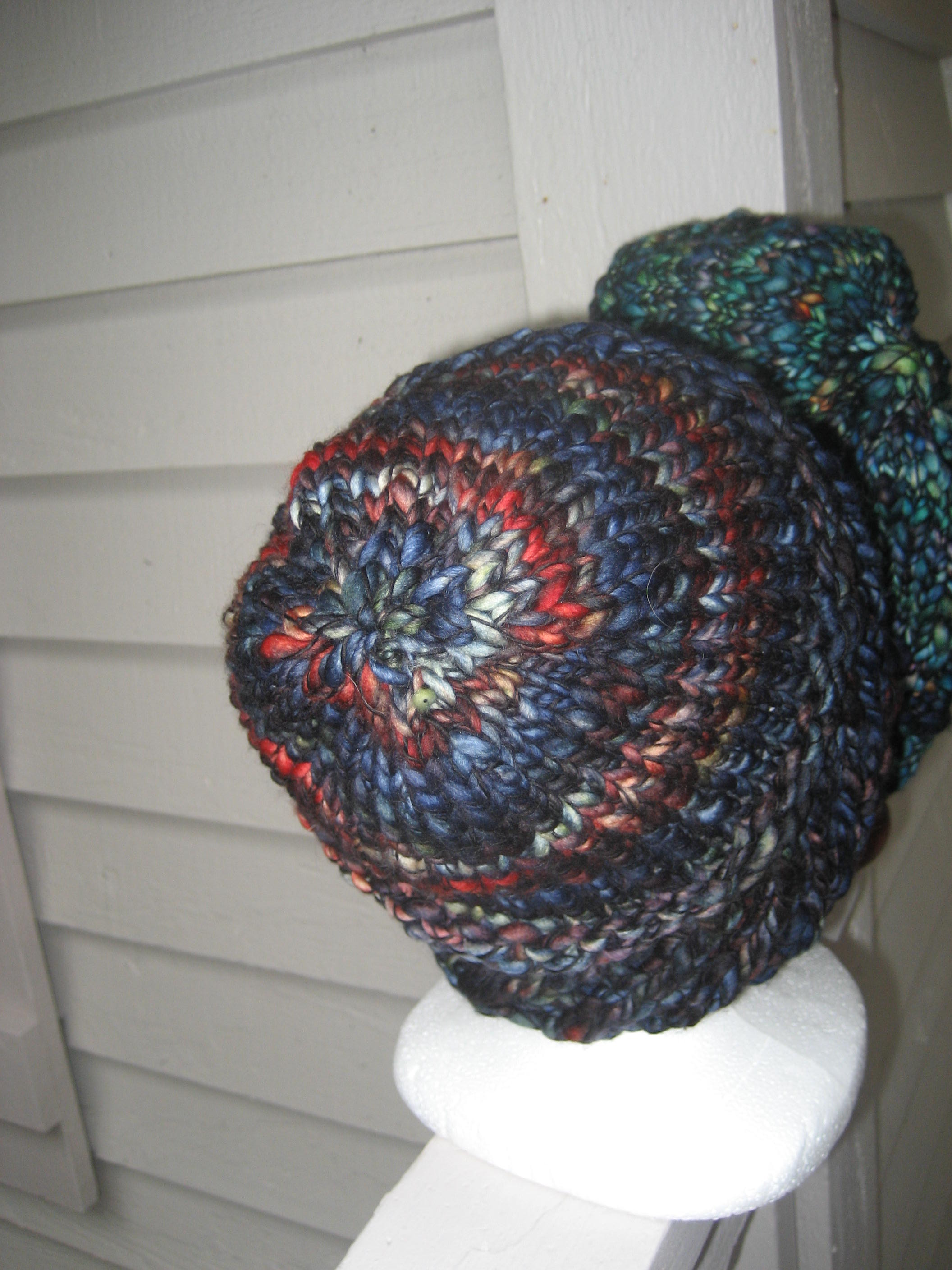 Perky II has a blue side and a red side. I’m not sure which side I like best. I’m still running a give away for the first Malabrigo March Hat. It could have a pompom if the winner likes.