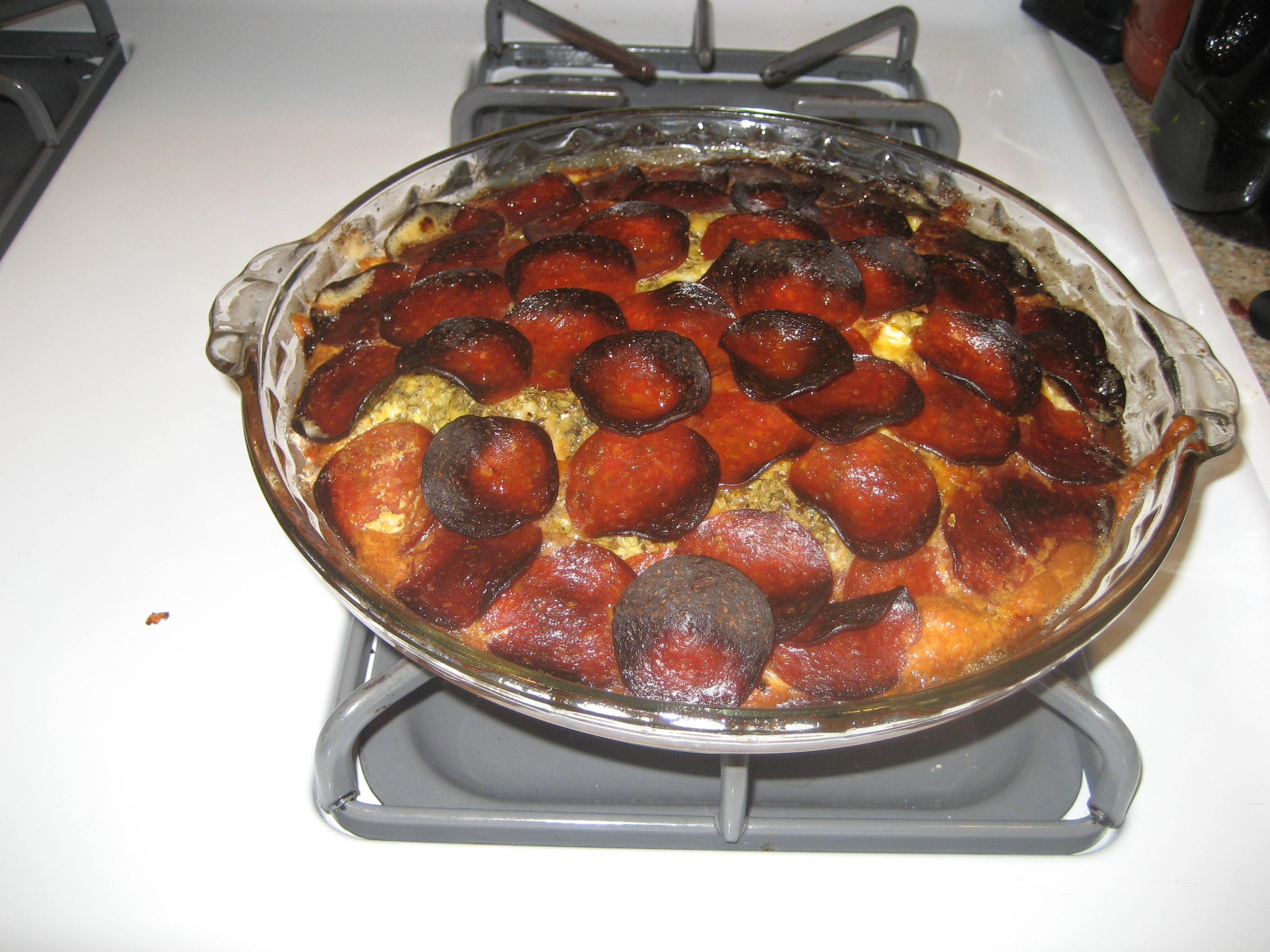 It’s my week to cook. Tonight we’re having pepperoni pizza quiche. I shouldn’t try to cook and write a blog post. The pepperoni got a little crispy.