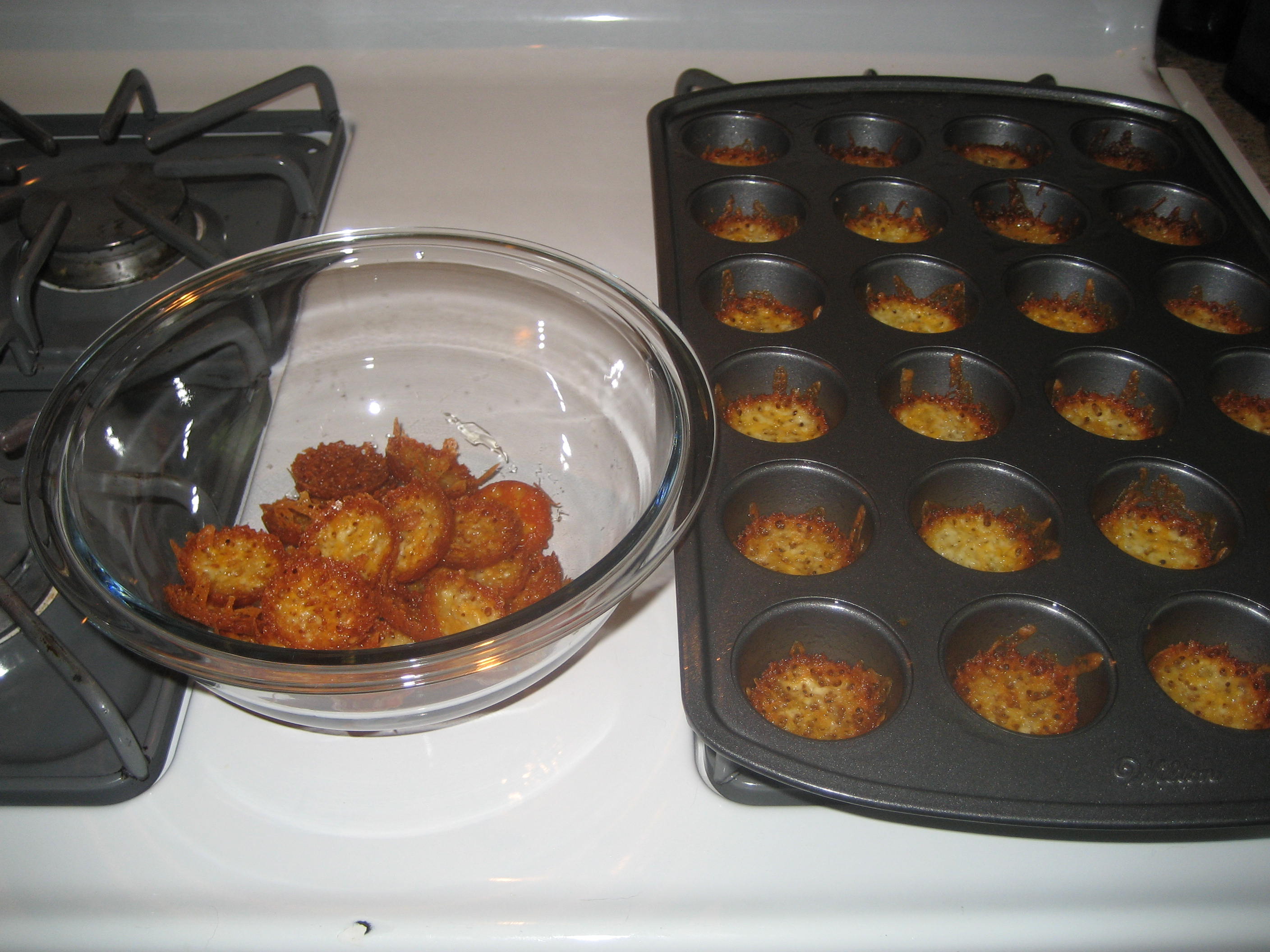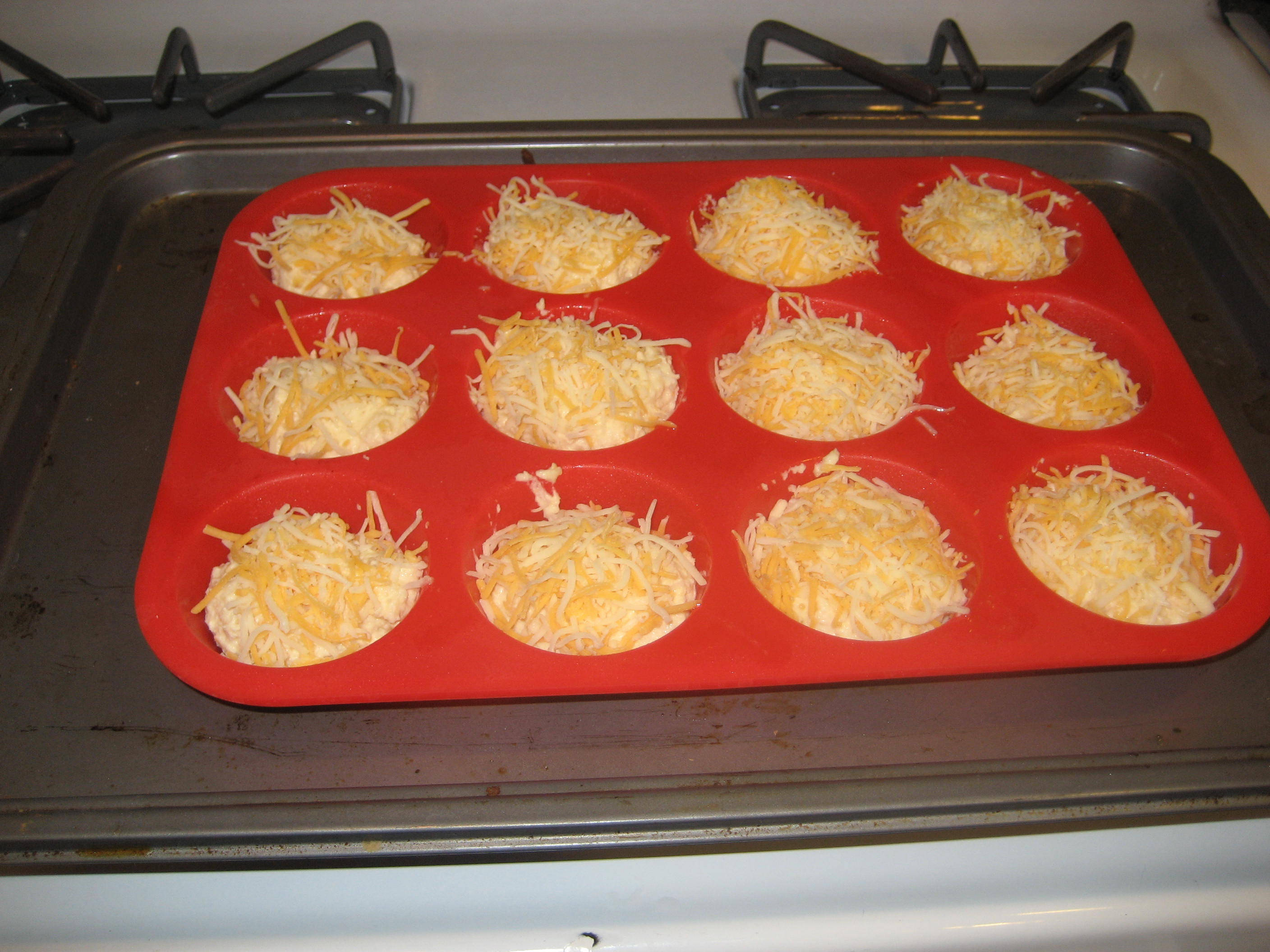 This week, we’re cracking down on no carbs-no sugar. This past weekend I made a batch of cheesy chips and cheesy biscuits. I bought silicon muffin tins for mini tuna melts. (Remember those? Boy they were tasty.) They were perfect for the cheesy biscuits. This helps keep the portions even and made cleaning up a breeze.