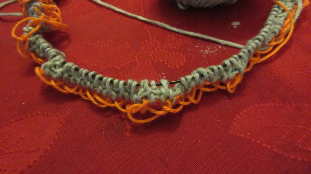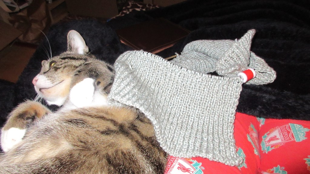 Over the Thanksgiving holiday, I started a new project. Introducing Partly Cloudy. This yarn is cotton, yak and nylon. Oh my, is it soft. This pattern had an interesting cast-on. I’ve done provisional cast-on’s before to keep the stitches live for seaming/grafting ends together. This was the first time I’ve done it to create a stretchy finished edge. It looks nice. I’m just about to finish the first skein. I have 5 of 10 inches of ribbing completed!