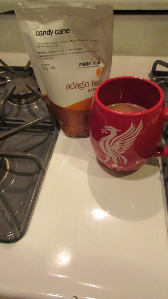 We’re celebrating this Friday night with some festive candy cane tea. This is a flavor I normally love, but this particular blend is not my favorite. I didn’t realize it had bits of candy cane pieces mixed in. Since the British Hubby and I have been on keto, I’ve become very sensitive to sugar even in small amounts. This is a blend I won’t purchase again.