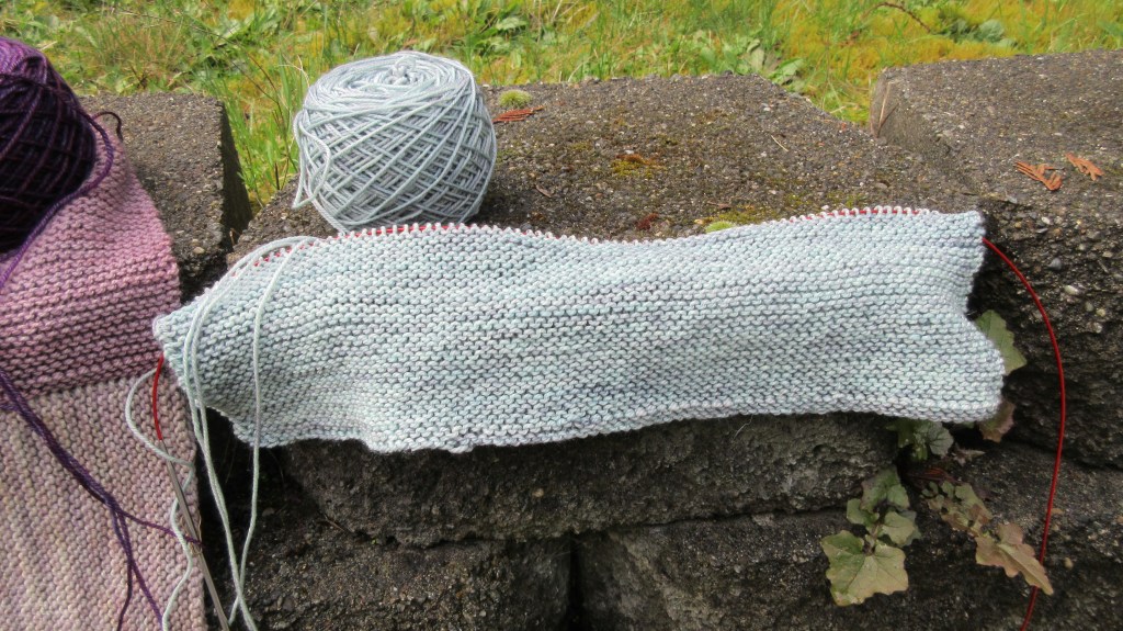 I’m making great progress on the original Grandma’s Log Cabin pictured above. I’m on block four. This is the last new color block. The remaining blocks will be repeats of these four colors. I had two different skeins of dark purple from the 2019 blanket club. They’re very similar so in an effort to use my stash yarn, I decided to stripe them. I’m not sure I have enough knitted yet to see how it’s going to look. I’m on row 13 of 132 with 132 stitches. That’s about 30 more stitches from block three, and I can tell the rows take just that little bit longer to knit. I guess I should say I’m getting good value for my money.