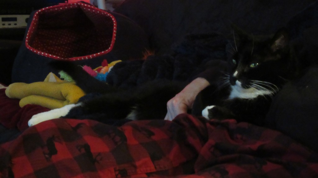 Burt likes movie night for the snuggles. Disaster movies don’t scare him!