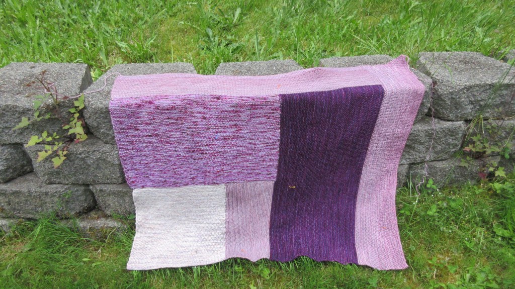 I could stop here and call it a lovely lap blanket, but I think I want this to be huge in all it’s purple glory. I’ve been calling it Purple Rain or Prince now that I have all the colors in action. To say that I love this blanket is a bit of an understatement. I’m infatuated with this blanket’s purply goodness. This next block has 208 stitches and 132 rows. I suspect I might run out of yarn well before I’m ready for block eight.