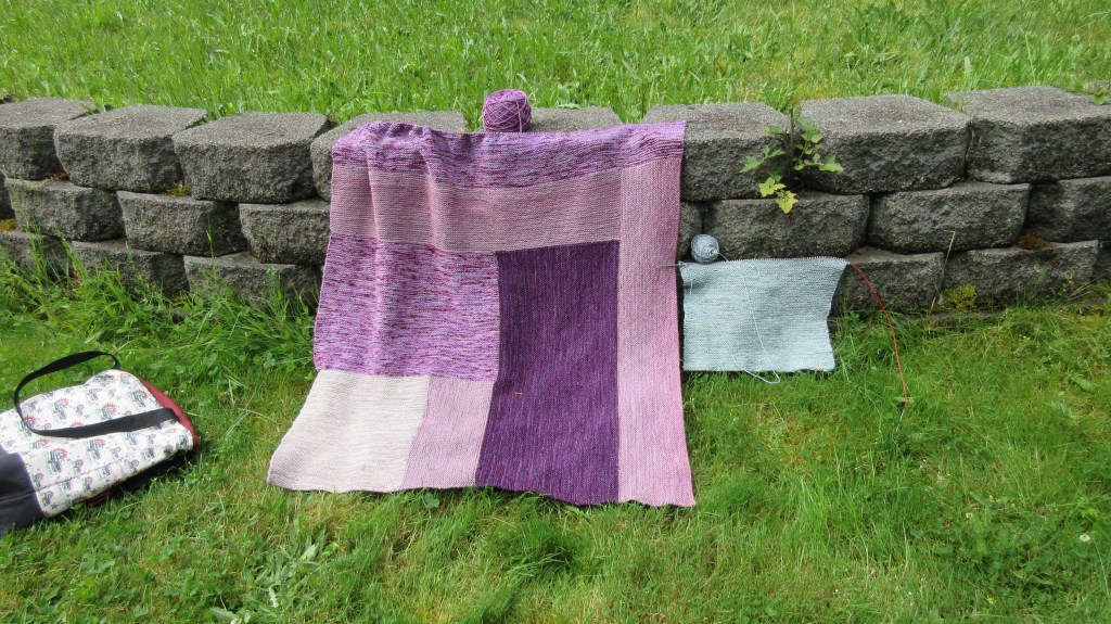 June seemed to drag on and on forever, and now July is flying by. Or that’s how it feels. I think it’s due to the lack of knitting time I’ve had lately. I always think I can knit faster than I really can. Grandma’s Log Cabin aka Purple Rain now has four full skeins of yarn in it. Yes, there’s more than that with the other blocks, but I’ll include them once I finish a skein. This is getting huge.