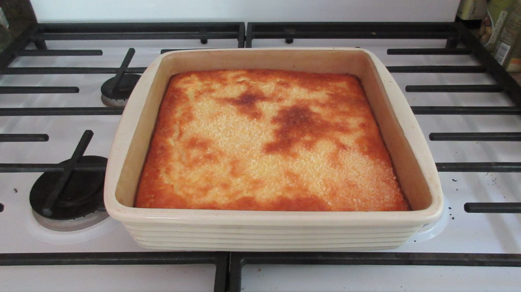 I decided to make this in my 9 x 9 ceramic dish. I like baking in ceramic, and I don’t own a ceramic pie pan. I also think the British Hubby and I manage portion control better when desserts are in square or rectangle dishes. You all may not have that problem.