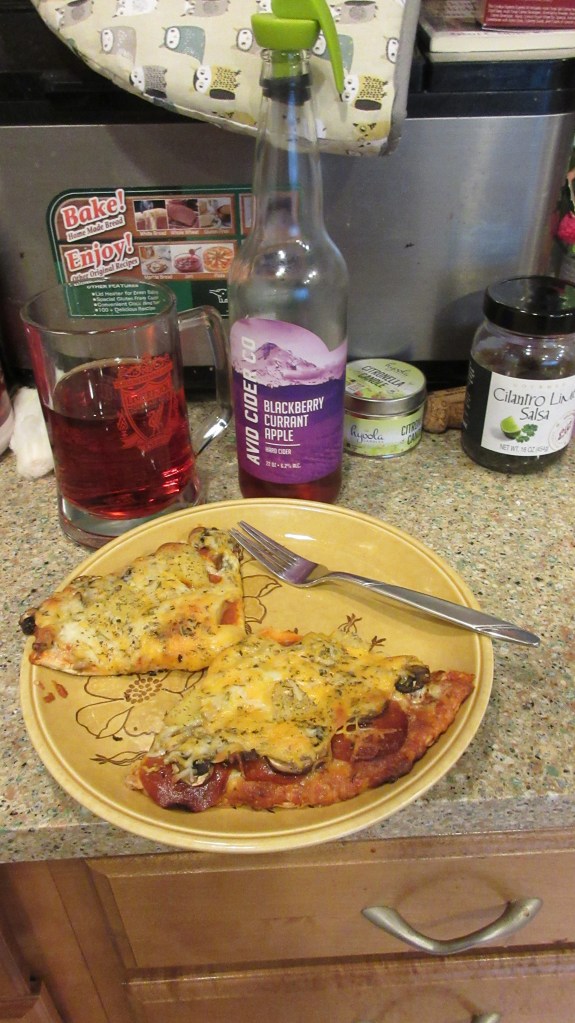 We carried the flare onto our Friday night pizza. Pineapple and a new to me cider. Blackberry, current and apple, yum!