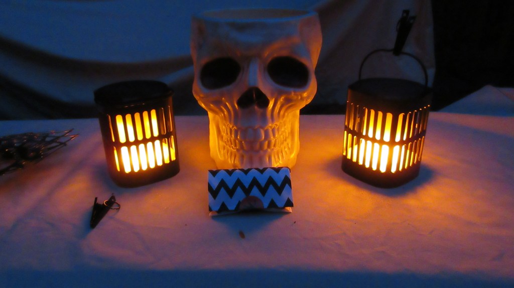 I have a fun Trick or Treat bucket filled with 13 wrapped surprises. The official start date is October 1. It’s not a surprise or mystery KAL. The pattern is Haunted Handwarmers. I have the needles, and I’m all set to cast on! The rainy weather and our spooky decorations are getting me in the mood for Monster Mayhem!