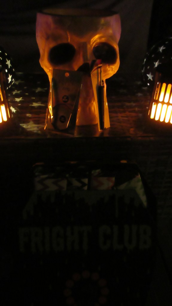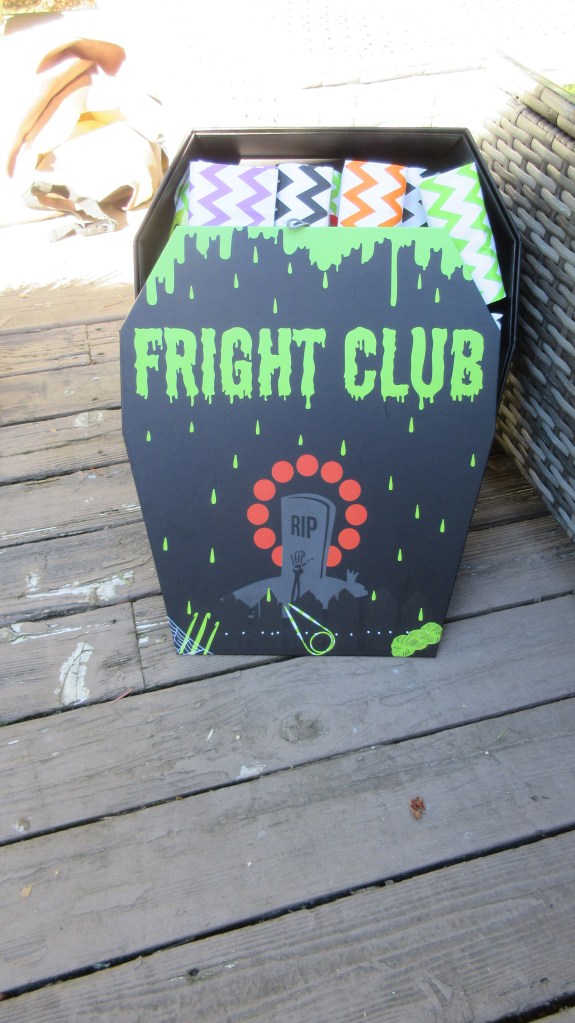 My latest excitement involved me squealing over my Halloween KAL. I’m having so much fun with the Haunted Handwarmers that I decided to add in Cowl-o-ween. I won’t have both of these done by October 31. That’s okay. I’ll have matching set at some point in November. This one came in it’s own coffin! You read that correctly. A coffin for my KAL. I’m not sure what I’m more excited about. The knitted items or the fun Halloween decorations I can use year after year?