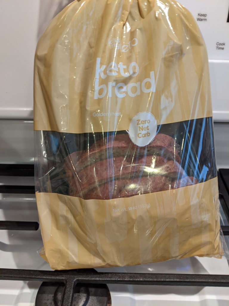 The slices are small, but that’s okay since the fiber count is very high. Earlier in the week, I posted photos of our cheese on toast. You can’t see the toast, but it’s the honey loaf slices from Kiss My Keto. These aren’t as dry as the last brand we tried. All the recipes I’ve made, the bread is really crumbly. These stay together in the toaster. This is crucial since crumbly bread in a toaster sets off the smoke detectors. (The kitties hate it when smoke detectors go off.) These hit the spot for making sarnies and cheese on toast.