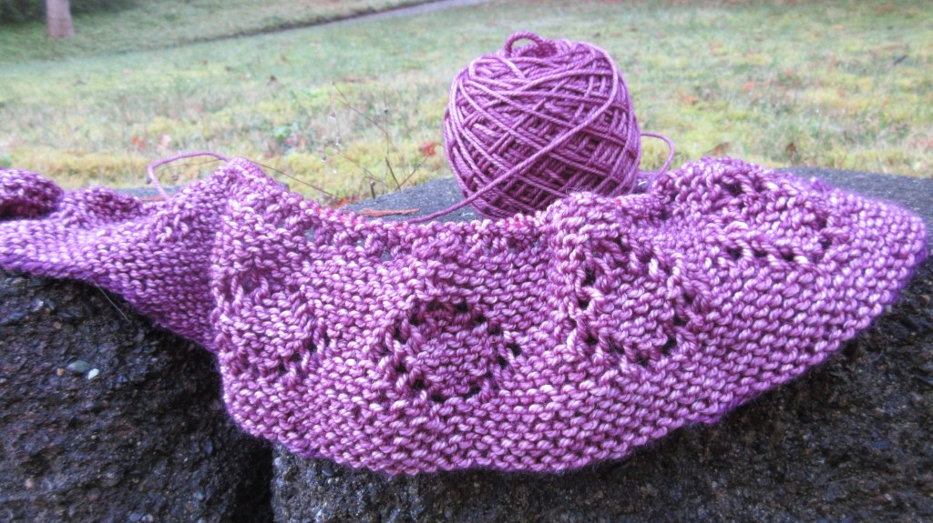 As Fright Club is winding down, I decided to cast on a purple poncho before jumping into holiday knitting. Here’s the start of Set Fire to the Rain. I’m hoping to wear it on some holiday strolls through the neighborhood to check out the holiday lights.