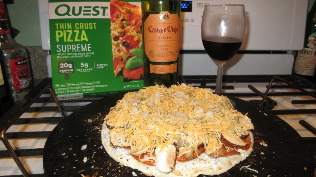 This week we had a new to us Quest pizza. Introducing supreme. We all need more veggies in our diets. It pairs well with Rioja. Yum!