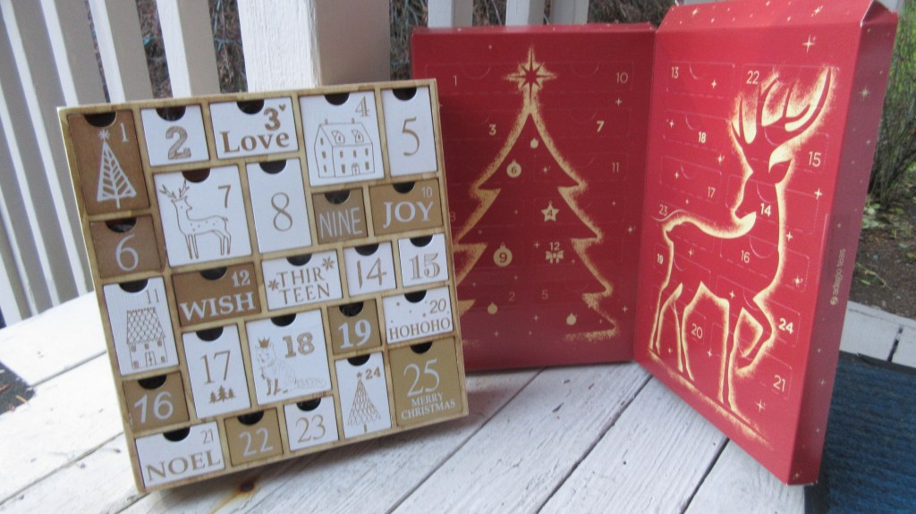 December 1 marks the start of reusable advent calendars. The first known advent calendar dates back to the year 1851. You can read more about the history here. Now you can find commercial advent calendars filled with almost anything. Chocolate being one of the most popular. We’re partial to tea and yarn calendars here. This year we decided to refrain from the chocolate variety to help us stick to our low-carb goals. (That was a hard decision, and one that was not made lightly.)