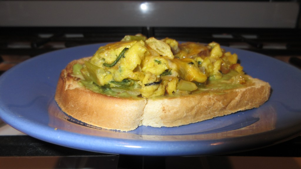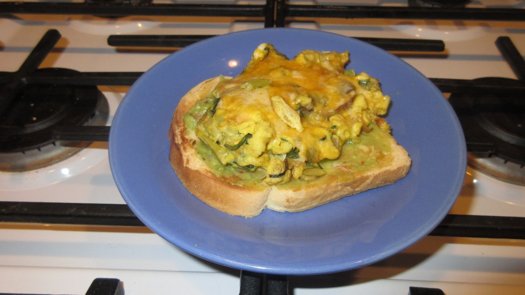 What’s new in keto land? This week, I’ve been trying to find ways to increase our veggie consumption. In the summer, I enjoy eating salads for lunch and dinner. Now it’s the darkest part of the year, and I really want to snuggle up with comfort food. One obvious place to add more veggies into my diet was breakfast. Avocado on keto toast is pretty amazing on it’s own. Adding in a veggie omelette brings this to a whole new level.