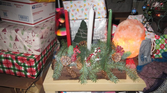 Winter Solstice celebrations can be traced back to Stonehenge times. No doubt how the solstice is honored has changed over the years. We’ve been trying to incorporate new forms of light into our lives. As 2020 comes to a close, honoring the renewal of light and nature feels very fitting. The British Hubby and I decided to make our own yule log to honor this special year. We started with items we could find in our own backyard. With a few supplies from the craft store and our hot glue gun, we had a festive yule log in no time. One we’ll be able to use for several years to come. Can you spot the additions earlier yule logs would not have included?