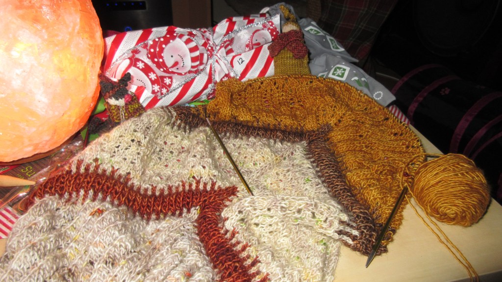 - Day 12: Yarn and more yarn. I had two lovely teas while knitting up these transitional sections. Chamomile tea by adagio was very soothing for a night time tea when I’m unwinding from being online all day. French Vanilla Black tea from plum deluxe was just the opposite. It was a great pick me up.