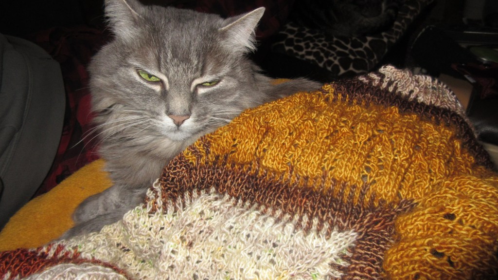 Gracie was my model this week. She’s wearing a lovely handknit Craftvent scarf that accents her fluffy fur.